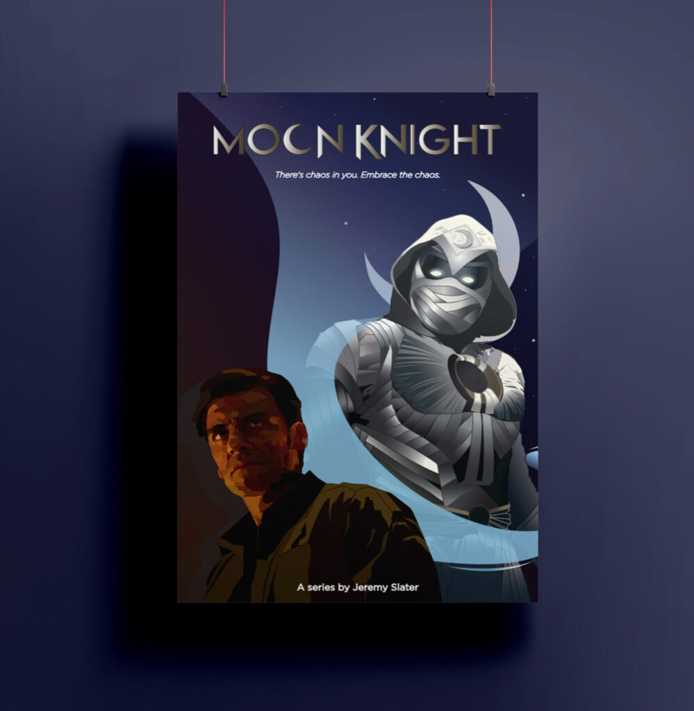 For this Illustration project, we were asked to design an illustrated poster for a movie or series. I chose the Marvel series Moon Knight.